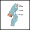 - Sostenga la jeringa en su mano como si fuera un lápiz con la aguja apuntando hacia arriba.
