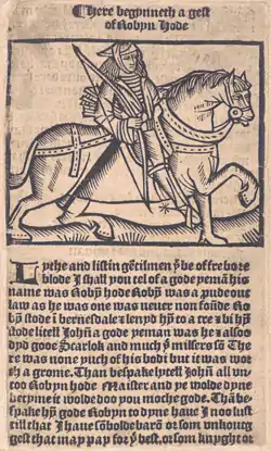 Del mismo modo, hubo un proscrito de Berkshire, en 1262, que tenía el alias "Robehod". También había un barco en Aberdeen, en 1438, que fue llamado "Robene Hude".[9] La primera mención del poema de Robyn Hode está en el poema Pedro el Labrador de William Langland, escrito en 1377.[10]