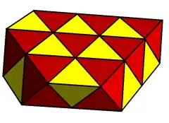 Otro panal euclídeo (escaliforme) es un panal de losa cuadrada alternada, s{2,4,4} y ![]()