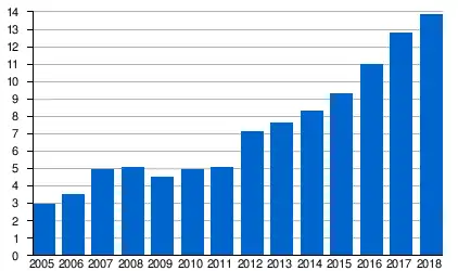 | 2015 | 9,282,884 | 502,928 | 97,218 | 31,421 | |