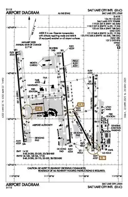 - Información del Aeropuerto Internacional de Salt Lake City en AirNav (en inglés)