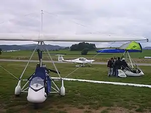![]() Un ultraligero en el centro y dos deltatrikes en cada lado, Aerosport 2011 | ||