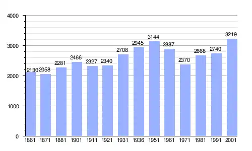 | Gráfica de evolución demográfica de Aiello del Sabato entre 1861 y 2001 |