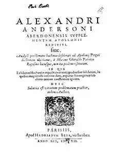 Alexander o Alexandre Anderson (Aberdeen, 1582-ibídem, 1620) fue un matemático escocés. En su juventud fue al continente y enseñó Matemáticas en París, donde publicó o editó, entre los años 1612 y 1619, varios tratados de geometría y álgebra.