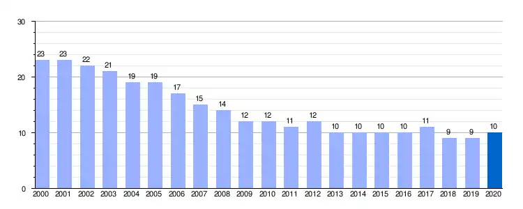 Gráfica de evolución demográfica de Amayuelas de Ojeda entre 2000 y 2020