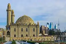 ![]() | SH | Mezquita Bibi-Heybat | Bakú | 1281-1282 1990 | Es una reconstrucción realizada en 1990-1997 de la mezquita del siglo XIII erigida por el Shirvanshah Farrukhzad II Ibn Ahsitan II. Era una de las mezquitas históricas de Azerbaiyán. | |