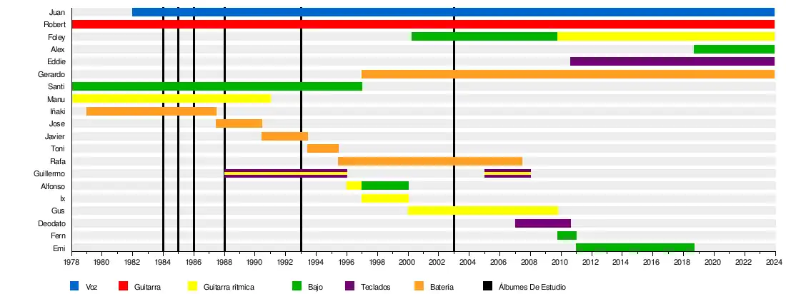 Santi Rubio Manu García Iñaki Munita Javier "Carlucho" o "Cozy" José Sánchez Johannes Joseph Swampzig (músico) Toni Montalvo Rafa Delgado Guillermo Pascual Alfonso Polo Ix Valieri Gus Santana Deodato "Dio" Montenegro Fern Graver Emi | ||