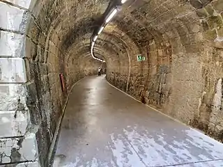 A finales de agosto del mismo año, se anunció que el túnel estaría abierto para principios de 2019. Las obras correspondientes, que costarían unos tres millones de euros, deberían comenzar en el verano de 2018. No obstante, con posterioridad, se comunicó que el momento de finalización de las obras tendría lugar a inicios de 2020; finalmente, los trabajos de acondicionamiento empezaron en febrero de este último año contando con un plazo de ejecución de doce meses, por lo que en febrero de 2021 tendría que haber estado abierto.[17][3] Después de sufrir retrasos, en octubre de 2020 se descubrió la boca nordeste (la de La Cañía) y se informó de que el proyecto terminaría siendo una realidad en el verano de 2021.[18] Sin embargo, los trabajos se volvieron a retrasar debido a, entre otras causas, un derrumbe interior de la bóveda a la altura de la calle Ramón y Cajal, motivado por la presencia de manantiales y que implicó un sobrecoste en los trabajos de 405.000 euros y un nuevo retraso.[19][2] Finalmente la reapertura del paso subterráneo fue inaugurada el 28 de mayo de 2022.[20]