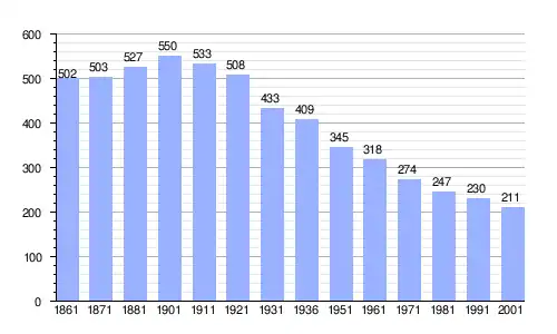 | Gráfica de evolución demográfica de Aquila d'Arroscia entre 1861 y 2001 |