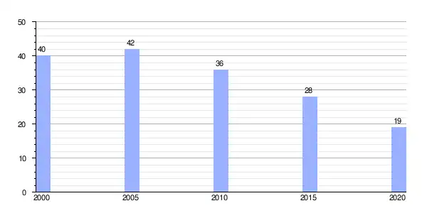 | Gráfica de evolución demográfica de Armea (aldea) entre 2000 y 2020 |