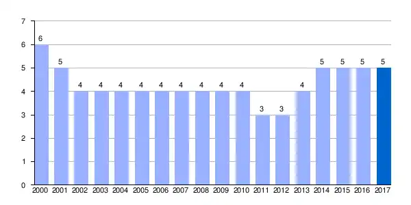| Gráfica de evolución demográfica de Arreo[4] entre 2000 y 2017 |