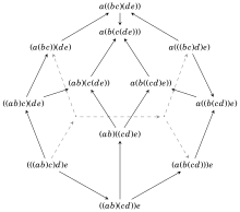 El asociaedro bidimensional K4 representa los cinco niveles de paréntesis de cuatro símbolos, o las cinco triangulaciones de un pentágono regular. Es en sí mismo un pentágono y está relacionado con el diagrama pentagonal de una categoría monoidal.