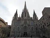 Cabe remarcar también la importancia que en la era medieval tuvo la Iglesia católica, presente en la vida de la ciudad a través de diversas órdenes monásticas que erigieron multitud de conventos y monasterios por todo el perímetro urbano: benedictinos (San Pablo del Campo, San Pedro de las Puellas, Valldaura, Santa María de Valldonzella, Santa María de Jonqueres), templarios (establecidos en lo que luego sería el Palacio Real Menor), hospitalarios (Hospital de la Santa Cruz), franciscanos (convento de San Francisco, llamado Framenors), dominicos (convento de Santa Catalina), trinitarios (convento de Nuestra Señora de la Buenanueva), agustinos (convento de San Agustín), carmelitas (convento del Carmen), orden del Santo Sepulcro (monasterio de Santa Ana), etc.[135] En Barcelona surgió además la orden mercedaria, tras la aparición según la leyenda de la Virgen de la Merced a Jaime I, san Raimundo de Peñafort y san Pedro Nolasco en 1218, a los que impuso la redención de cristianos cautivos de musulmanes; establecidos en el convento de la Merced (actual Capitanía General de Cataluña), su culto se difundió rápidamente y, en 1687, la Merced fue declarada patrona de la diócesis de Barcelona.[136]
