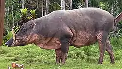 El babirusa de Togian (Babyrousa togeanensis), también conocido como babirusa de Malenge,[2] es la especie más grande de babirusa. Es endémico de las Islas Togian en Indonesia, un tiempo se consideró una subespecie de Babyrousa babyrussa hasta 2002.[3][4] El babirusa de Togian es más grande, en comparación con el babirusa del norte de las Célebes que es más conocido, tiene un mechón de cola bien desarrollado y los caninos superiores del macho son relativamente "cortos, delgados, girados hacia adelante y siempre convergen".[4][5] El babirusa de Togian es omnívoro, se alimenta principalmente de raíces y frutos caídos de los árboles, pero también de gusanos e invertebrados. A diferencia de otras especies de cerdos, el babirusa de Togian no mueve raíces en el suelo con el hocico cuando busca alimento, sino que patea el suelo para arrancar plantas.[5]