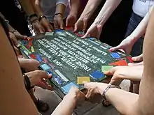 El 23 de marzo de 2006, con motivo de la conmemoración de los 30 años del golpe de Estado de 1976, en distintos barrios de la Ciudad Autónoma de Buenos Aires se realizó la colocación simultánea de láminas auto-adhesivas en las veredas recorridas por los vecinos, marcando los lugares donde luego se colocarían las baldosas definitivas.[5][6][7]
