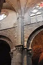 La nave, de 74 m de largo, tiene cinco tramos. Está apoyada en columnas de planta cuadrada, coronadas por capiteles decorados con diversos motivos: quimeras, sirenas, palmetas estilizadas, hojas de acanto, espíritus alados, un minotauro e incluso Hermes criofores. Otros evocan escenas de la vida cotidiana: un domador de monos, un avaro con su libro de cuentas, un combate de caballeros. Tres capitales historiados representan a Cristo en majestad, un ángel orando y las Santas mujeres en la tumba. Algunas columnas todavía muestran rastros de frescos.