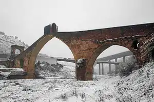 ![]() El Puente del Diablo, a través del cual se produjo la retirada catalana. | ||||