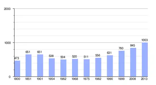 | Gráfica de evolución demográfica de Bellinghem entre 1800 y 2013 |