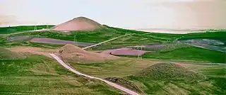 Otros dos túmulos de tamaño excepcional fueron identificados tradicionalmente como tumbas de otros reyes de la dinastía mermnada, pero estas identificaciones no son aceptadas por los eruditos modernos. El segundo túmulo más grande (Koca Mutaf Tepe) mide 53 m de altura y 230 m de diámetro en la base; su huella es aproximadamente igual a la de la Gran Pirámide de Guiza. Este túmulo se atribuyó tradicionalmente a Giges, pero los fragmentos de cerámicas del túmulo demuestran que data de al menos cuarenta años después de su reinado. Parece haber sido construido sobre un túmulo menor inacabado. Los arqueólogos han especulado con la posibilidad de que fuera construido para una reina, ya que su tamaño sugiere que se trata de un enterramiento real y ningún otro rey del periodo en cuestión es un candidato plausible.[2][3][5]