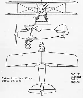 - Planta motriz: 1× lineal de 12 cilindros en V refrigerado por agua Hispano-Suiza 12Hb.