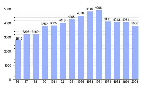 | Gráfica de evolución demográfica de Bono entre 1861 y 2001 |