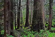 Hay bosques boreales en Alaska.[5] Los bosques en Hawái y los territorios de EE. UU. son tropicales.[6] Las regiones más boscosas de los EE. UU. son Maine, New Hampshire, Samoa Americana, las Islas Marianas del Norte y Virginia Occidental; las regiones menos boscosas son Dakota del Norte, Nebraska y Dakota del Sur.[7]