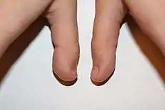| Pulgar corto, pulgar gordo, pulgar gordito, pulgar tonto, pulgar de dedo gordo del pie, pulgar de asesino, pulgar bohemiano, braquimegalodactilia. | ||