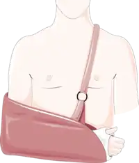 Un cabestrillo es un dispositivo para limitar el movimiento del hombro o el codo mientras se sana después de una fractura o luxación.[1] Se puede crear un cabestrillo a partir de un vendaje triangular .[1]