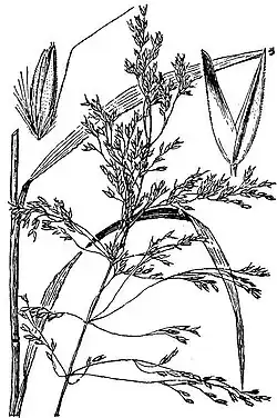 Es una planta perenne que alcanza un tamaño de entre 0,5 y 1,5 metros, cada tallo erguido tiene generalmente cuatro nodos herbáceos. Tiene hojas planas y abiertas, las inflorescencias con muy pequeñas espiguillas. Cada espiguilla se compone de un flósculo rodeado por un par de suaves brácteas en forma de V.