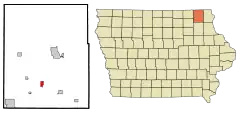 ![]() Localización de Calmar en el Condado de Winneshiek, Iowa. ![]() Ubicación de Iowa en EE. UU. | ||