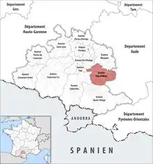 - Distrito de Pamiers[2] (7 cantones - subprefectura: Pamiers):