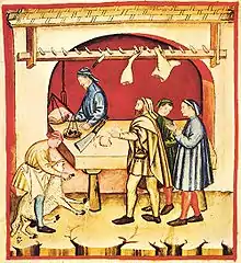En Inglaterra se prefería desde antiguo la carne de vacuno, así lo indica el apodo de los beefeaters dado a los guardianes de la Torre de Londres que viene a decir que eran sirvientes reales con una buena dieta (comedores de carne de vacuno), algunas de las recetas como la sopa de rabo de buey indican esa preferencia desde antiguo en las sociedades medievales inglesas. En la Edad Media (concretamente durante el siglo XIII) se establece la profesión de carnicero en las ciudades europeas.[14] En el Ménagier de Paris publicado en 1393 se hace mención al comercio de la carne entre diferentes villas europeas.