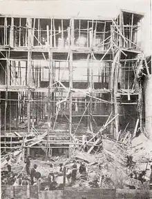 En total fallecieron entre 15 y 20 trabajadores en el derrumbe de la construcción, y la investigación reveló que la principal causa fue la acumulación de peso en la estructura producto de una lluvia ocurrida el día anterior.[10] Eugène Joannon describiría que originalmente había propuesto que el método constructivo fuese de una estructura de fierro revestida con cemento en los pilares, la cual fue reemplazada por el sistema Cottancin de ladrillos armados con fierro redondo después de asesorías por parte de especialistas francesas y que generaron la renuncia de Joannon como ingeniero, quedando sólo como arquitecto de la obra que finalmente se derrumbaría.[1]
