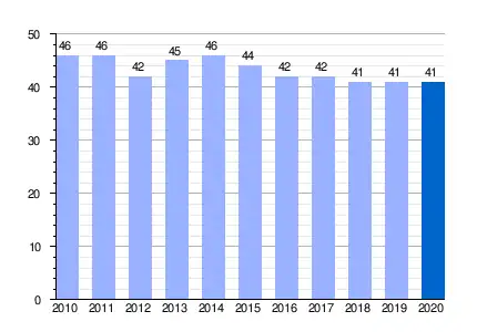 | Gráfica de evolución demográfica de Casadelas entre 2010 y 2020 |
