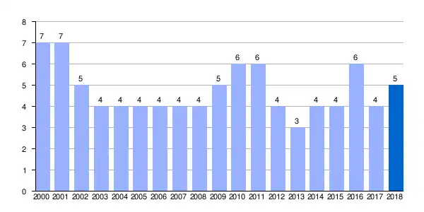 | Gráfica de evolución demográfica de Casas de Madrona[1] entre 2000 y 2018 |
