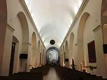 El interior del templo está decorado en estilo neoclásico, y el techo del crucero está cubierto por unas bóveda semiesférica. El altar principal es de reciente factura.