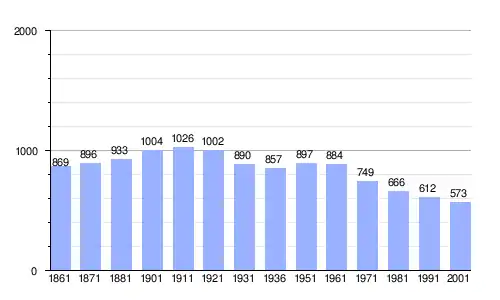 | Gráfica de evolución demográfica de Cimbergo entre 1861 y 2001 |