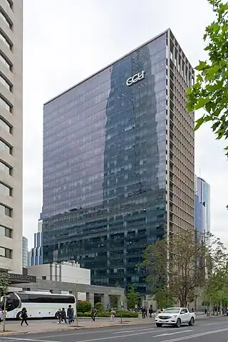 El edificio corporativo de la CCU se terminó de construir en 2006 en los terrenos ocupados antiguamente por la Fábrica de Cerveza y Hielo y Cousiño, que había sido inaugurada el 21 de noviembre de 1886 y que en 1902, con la unión de esta, la cervecera de Plagemann, y la Fábrica de Cerveza de Limache dieron origen a la CCU; la fábrica ubicada en el sector cerró en 1981.[8] Tiene 52 m de largo, 19 m de ancho y 105 de altura con 28 pisos; los arquitectos fueron +arquitectos – Flaño, Nuñez, Tuca – ADN y se ubica en avenida Vitacura 2670.[cita requerida]