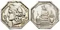 Medalla (jeton) emitido en 1796 por la Sociedad parisina de farmacia, en donde se emplea por primera vez el símbolo de la copa y la serpiente.