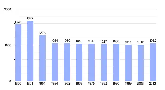 Los datos demográficos contemplados en este gráfico de la comuna de Couterne[4] se han cogido de 1800 a 1999 de la página francesa EHESS/Cassini, y los demás datos de la página del INSEE.[5]