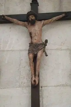 El crucifijo no es obra del mismo maestro. Los críticos lo consideran de inferior categoría. El perizonium o paño de pureza está realizado finamente con pliegues paralelos que recuerdan el estilo palentino del taller de Juan de Valmaseda. La cabeza puede recordar el estilo de Alonso Berruguete. Se atribuye esta obra a algún maestro secundario de 1520-1530.[1]