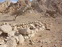 La notable necrópolis de Jebel Buhais, el enterramiento con datación radiométrica más antiguo de los Emiratos Árabes Unidos,[8] es una extensa necrópolis, formada por enterramientos que abarcan las épocas de Piedra, Hierro, Bronce y periodo helenístico de asentamiento humano en los Emiratos Árabes Unidos. La amplia zona de enterramientos presenta varias tumbas importantes de Wadi Suq, incluida una cámara funeraria única con forma de hoja de trébol, pero no hay indicios de enterramientos de la época de Umm Al Nar, aunque sí de épocas posteriores, incluido el periodo helenístico. La tumba en forma de trébol del periodo de Wadi Suq en Jebel Buhais, BHS 66, es una pieza única de arquitectura funeraria en los Emiratos Árabes Unidos.[9]
