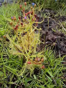 Drosera indica es una planta carnívora del género Drosera nativa de regiones tropicales, desde Australia y Asia, presente también en India de ahí su nombre, hasta África. Se la encuentra a lo largo de "arroyos" que se forman esporádicamente sobre suelos arenosos.