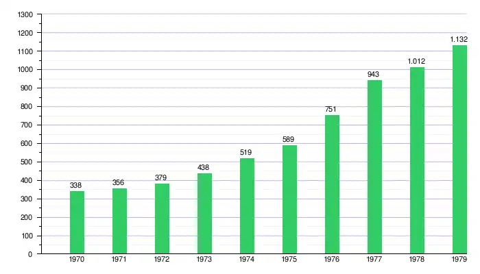 | Gráfica del crecimiento del producto interno bruto de El Salvador 1970-1979 |