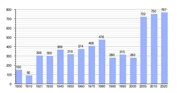 | Gráfica de evolución demográfica de El Coyol entre 1900 y 2020 |