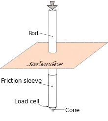 Un ensayo de penetración en cono o penetración en cono es un método utilizado para determinar las propiedades de ingeniería geotécnica de los suelos y delinear la estratigrafía del suelo. Inicialmente se desarrolló en la década de 1950 en el Laboratorio Holandés de Mecánica de Suelos en Delft para investigar suelos blandos.