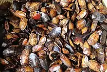 • Habas de agua es el nombre común de unos insectos la familia Dysticidae y el género Megadytes, especialmente la especie Megadytes giganteus (Laporte, 1835).[31] Se consume en todos sus estados de desarrollo.[22][24]