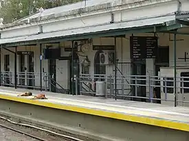 Posee tres andenes (dos plataformas) y un puente peatonal metálico techado entre ambas plataformas. En 2014 se elevaron los andenes para recibir a las nuevas formaciones. Frente a la estación existe un moderno centro de trasbordo con varias líneas de colectivos.