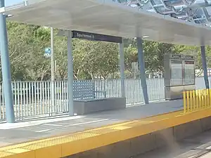 La estación Expo/Vermont cuenta con 1 plataforma central y 2 vías.