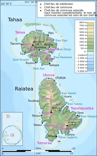 ![]() Mapa donde consta la comuna en la zona sur de la isla de Raiatea